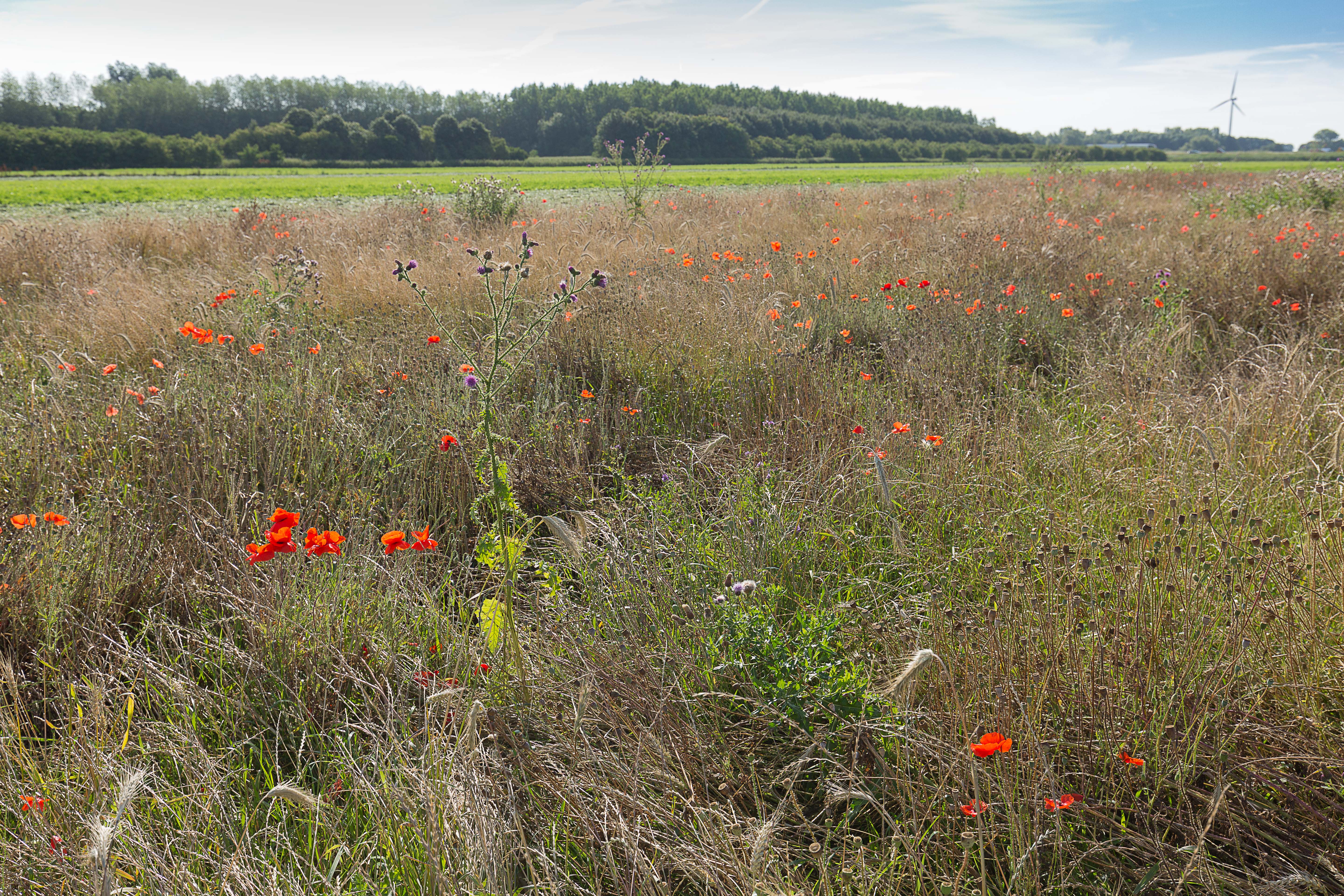 Bij sinusmaaien wordt een gebied niet in één keer volledig gemaaid. In plaats daarvan blijven golvende stroken staan, zodat bloemen kunnen bloeien en zaden kunnen rijpen. Dit vergroot het aanbod van voedselplanten en creëert schuilplaatsen voor bijen en andere insecten.