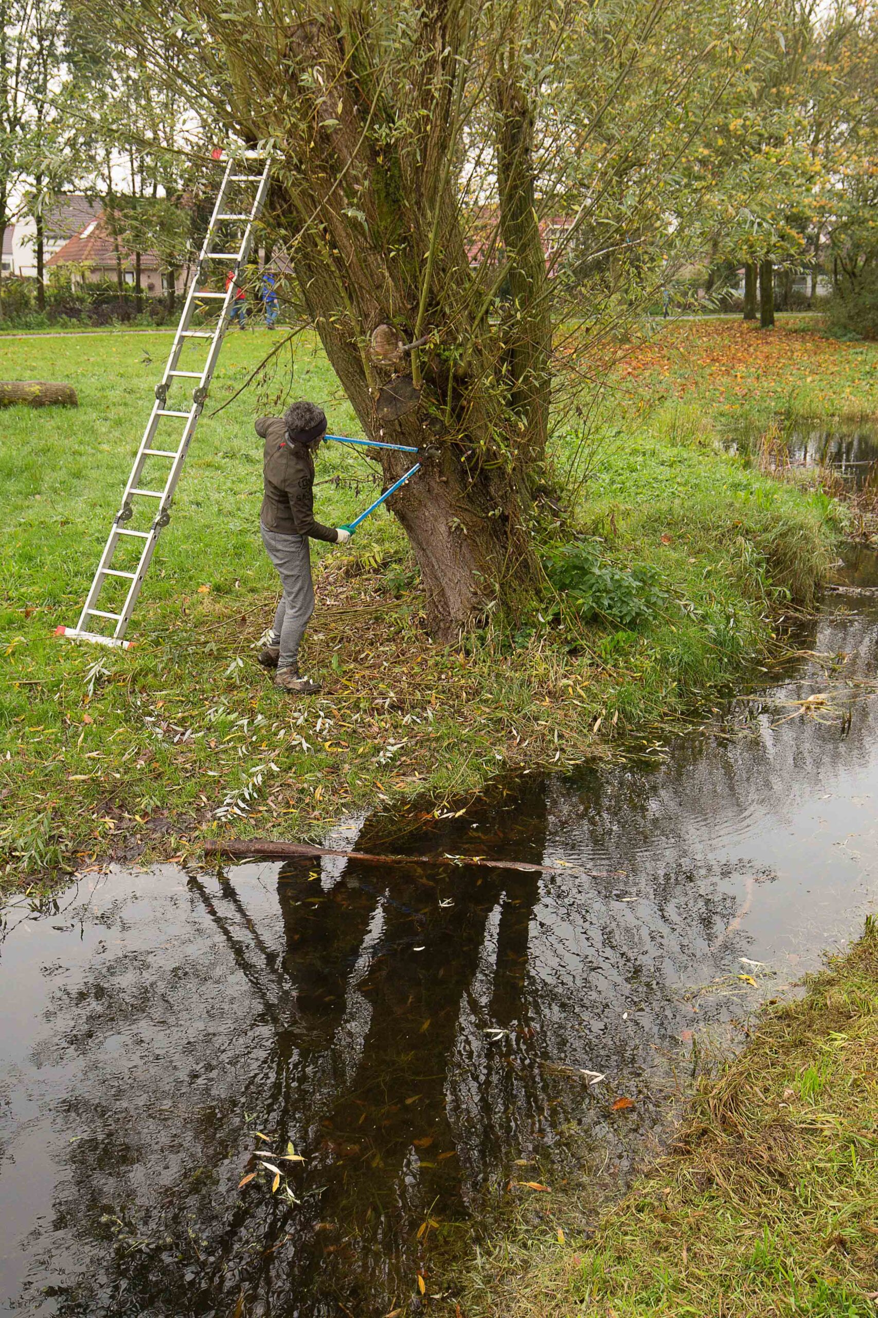 Je werkt nooit alleen. Een enthousiaste medewerker van Landschapsbeheer Flevoland begeleidt elke werkdag, legt aan het begin uit wat er op het programma staat en werkt gewoon mee.