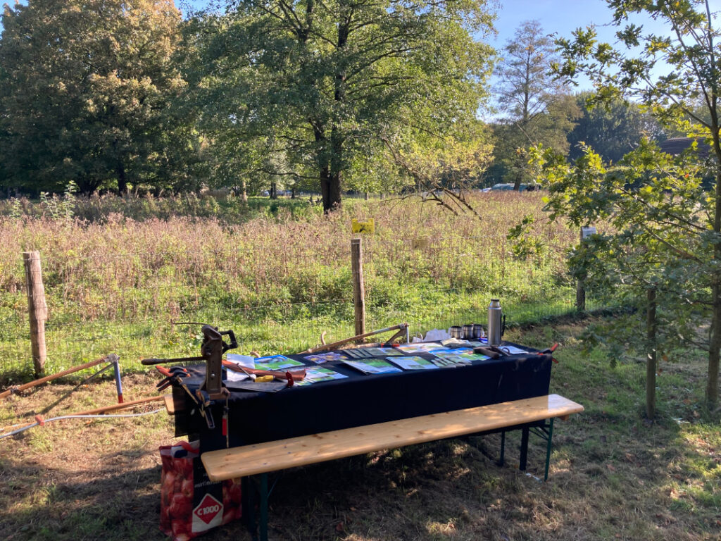 Op zaterdag 28 september was Landschapsbeheer Flevoland samen met Kirsten en Liz van de Flevolandse zeisbrigade aanwezig op het Herfstfeest van Stad & Natuur, IVN Almere, de Almeerse Wolunie en het Eksternest. Naast een braderie waar je onder andere hazelnootpasta kon maken, alles over bijen leerde en de oogstmachines van Stichting BOT kon bewonderen, leerde je ook meer over de schapen en geiten die hier worden gehouden.